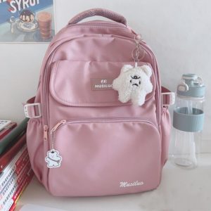 Balo đi học phong cách Hàn Quốc – Balo túi hộp Musiluo – Hồng