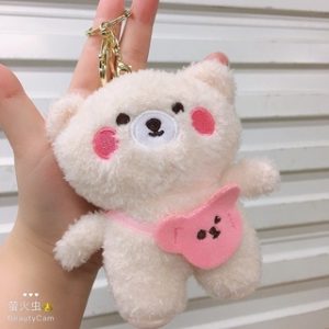 💒 Em móc khoá gấu xù trắng nhồi bông ạ